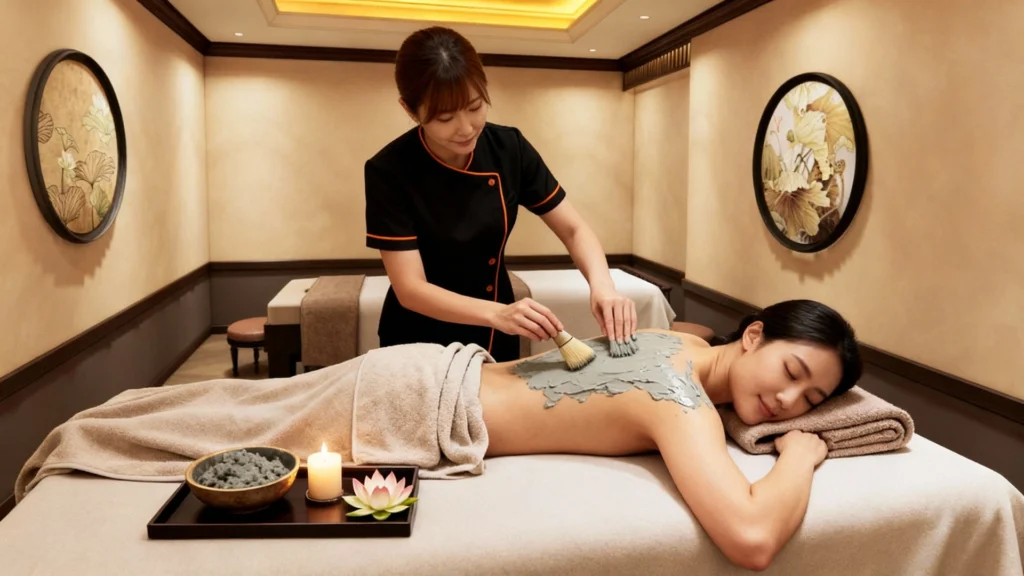 Dead Sea mud wrap detoxifies, firms skin & fades pigmentation for a radiant glow.