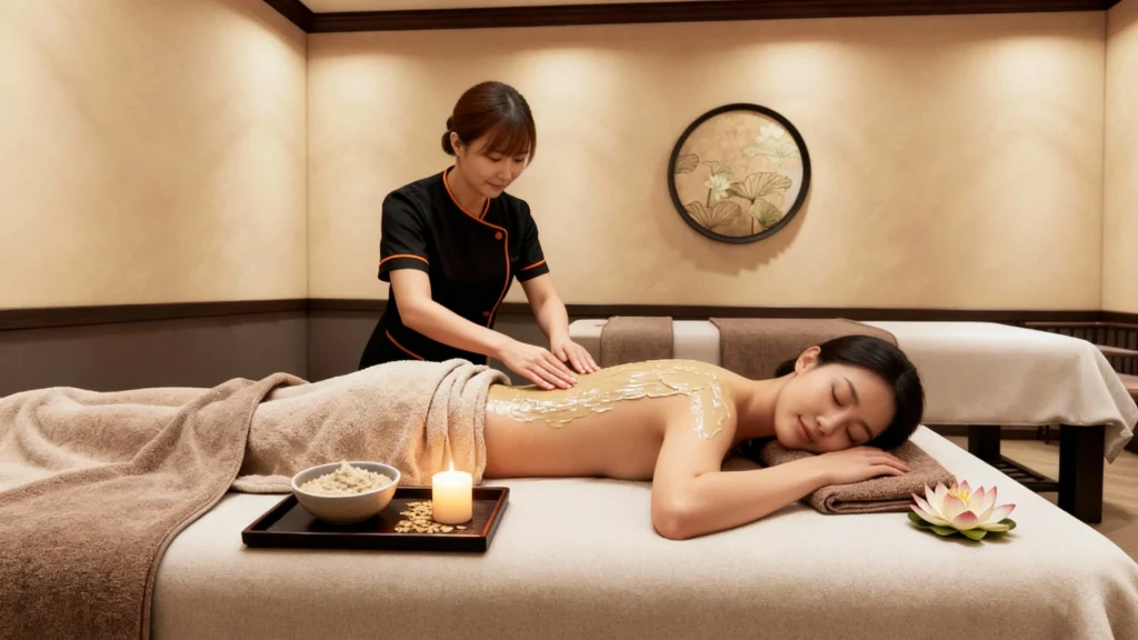 Warm oat body wrap detoxifies, relieves stress & renews skin with antioxidants.